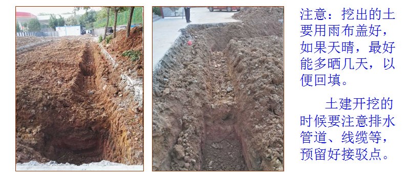 按照土建設(shè)計要求,在己經(jīng)定好位的基坑點和整個車庫安裝范圍進行開挖,具體開挖深度和寬度要嚴格按照設(shè)計圖來進行。